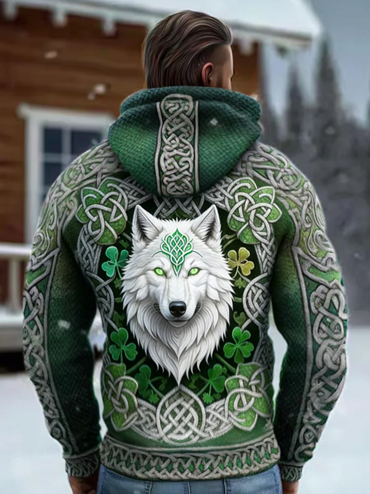 Men's Irish Celtic Wolf Pattern Hoodie