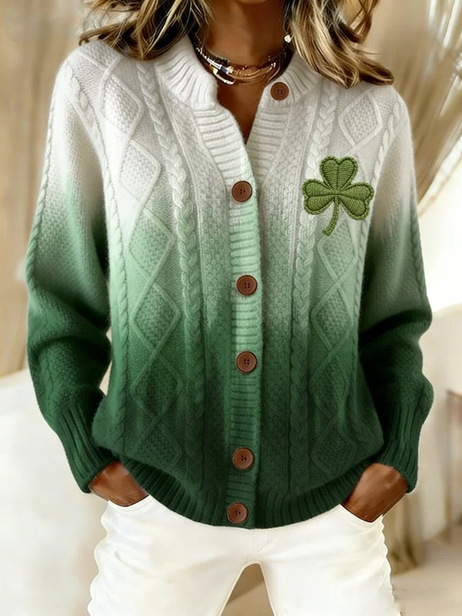 Women's Retro St. Patrick's Day Print Knit Cardigan