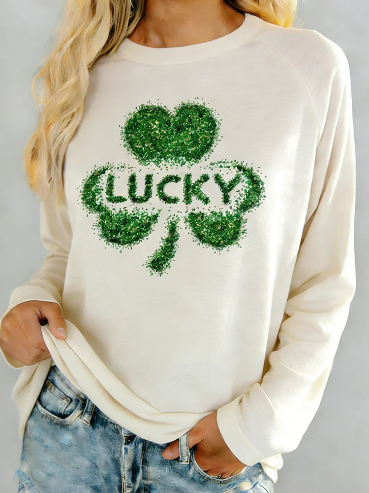 Women's St. Patrick's Day Shamrock Print Crew Neck Sweatshirt