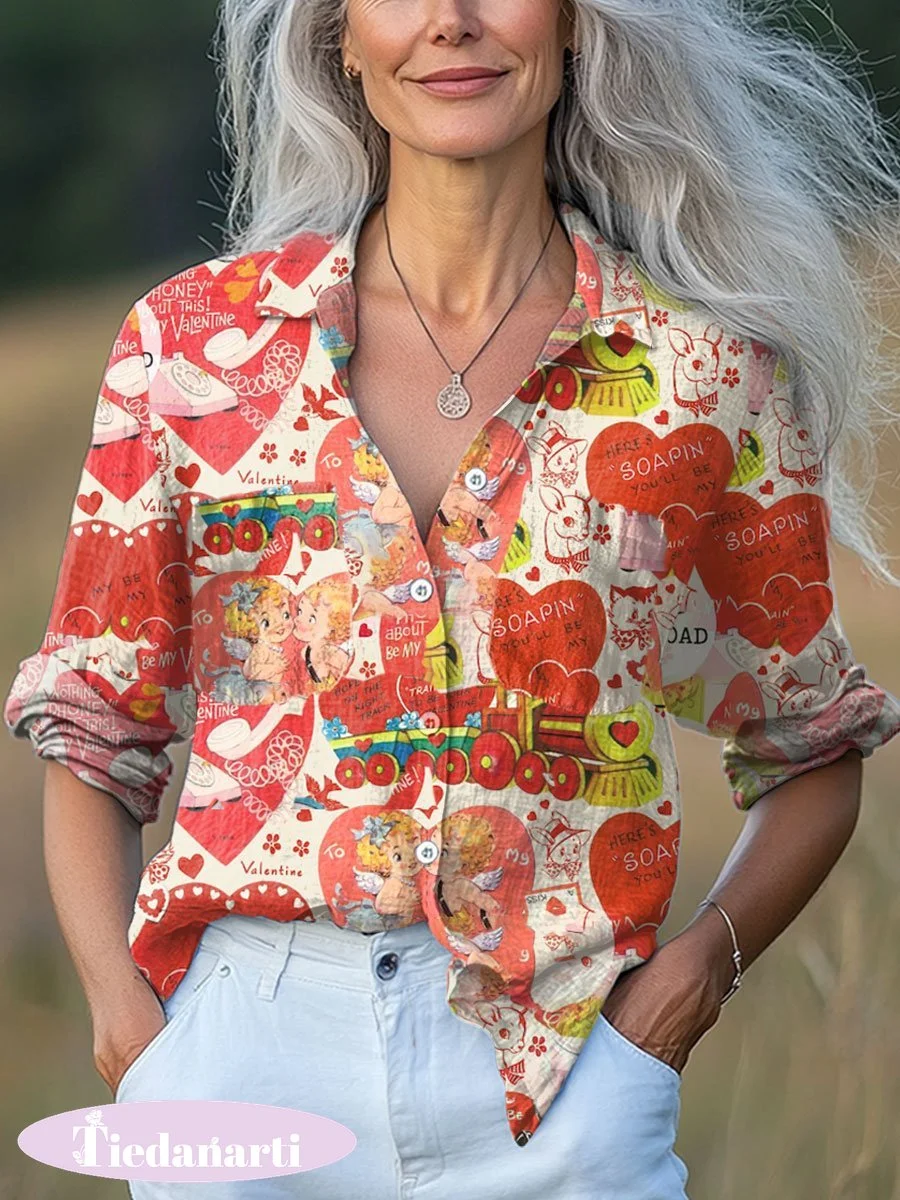 Women's Valentine's Day Art Print Casual Long Sleeve Comfortable Cotton Shirt